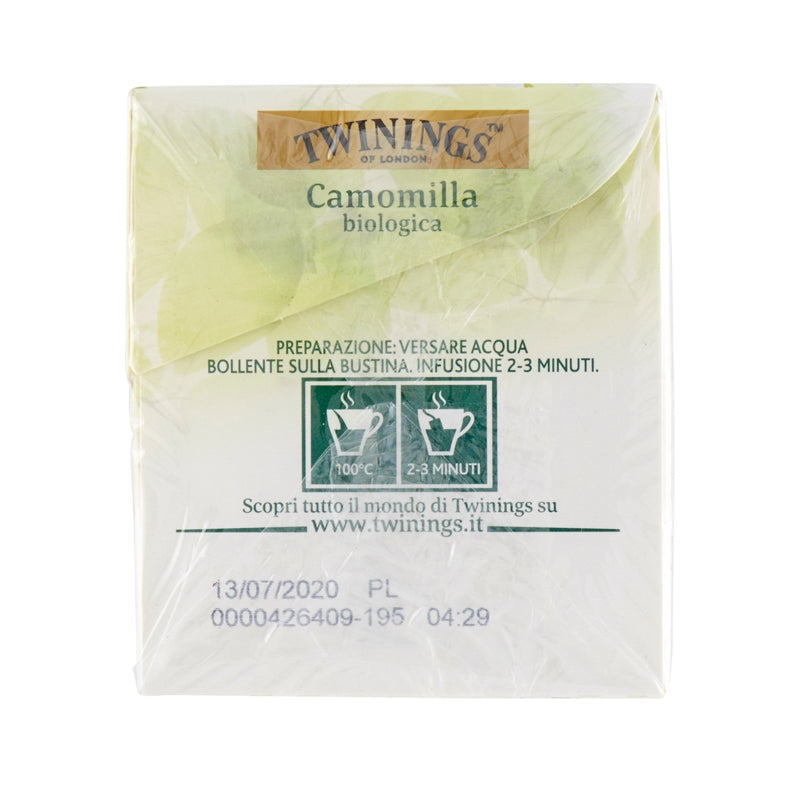 La Camomilla Twinings da agricoltura biologica ha solo ingredienti naturali senza aromi artificiali e ha un gusto leggero e delicato. Il modo perfetto per rilassarsi senza dimenticare la qualità.