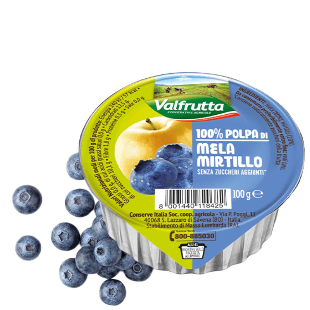 Valfrutta - 100% Polpa di Mela e Mirtillo, senza zuccheri aggiunti e glutine - 60 vaschette da 100 g
