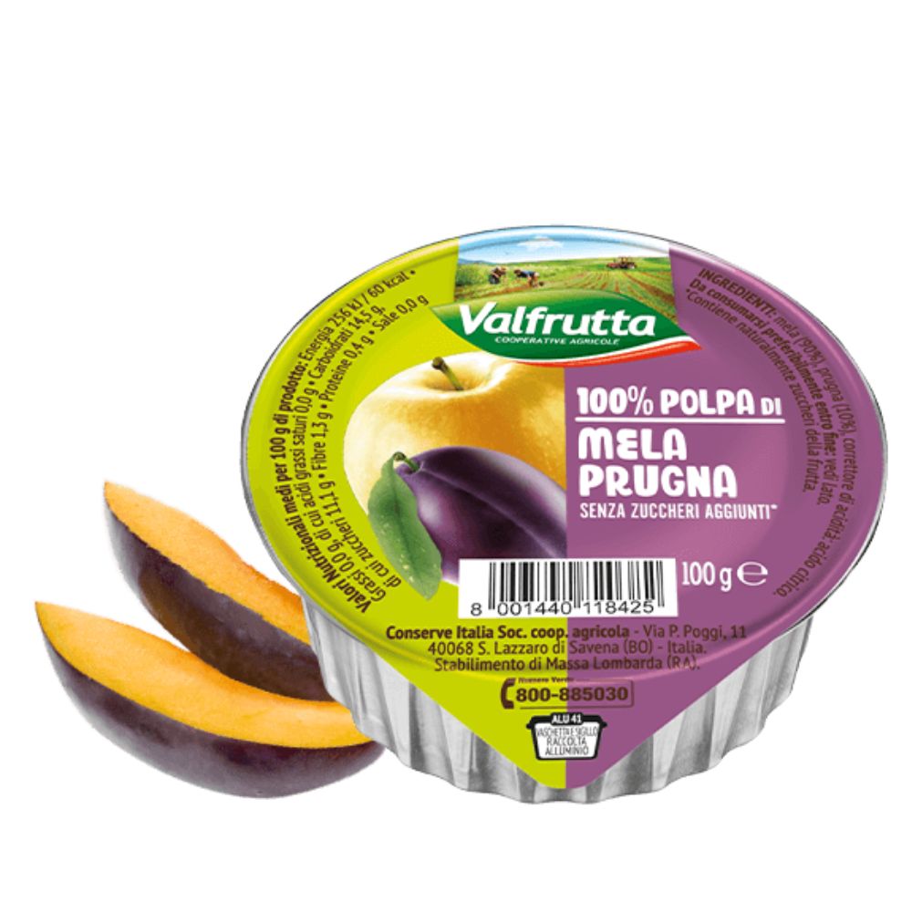 Valfrutta - 100% Polpa di Mela e Prugna, senza zuccheri aggiunti e glutine - 60 vaschette da 100 g