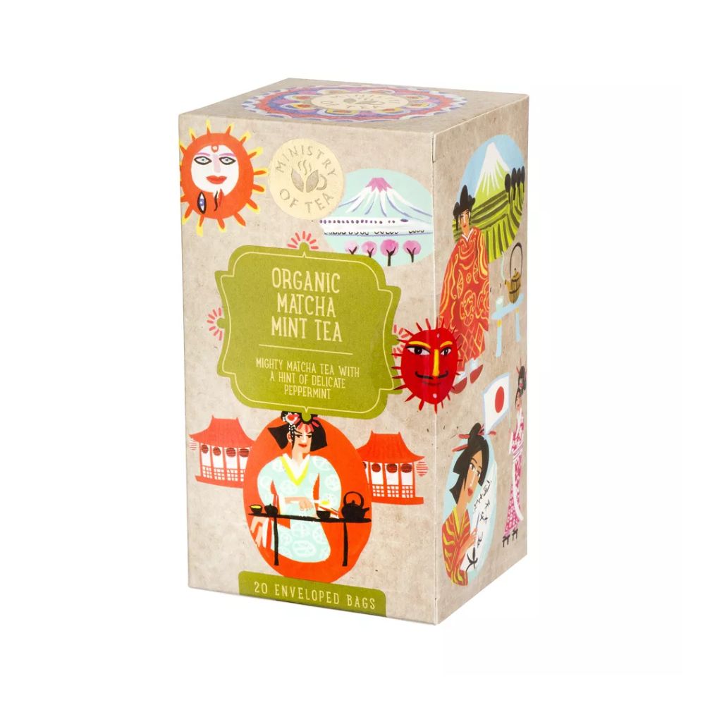 Matcha Mint Tea di Ministry of Tea è una miscela di tè verde biologico raccolto a 8000 piedi sul livello del mare, nella tenuta di Korakundah nel sud-ovest dell'India.