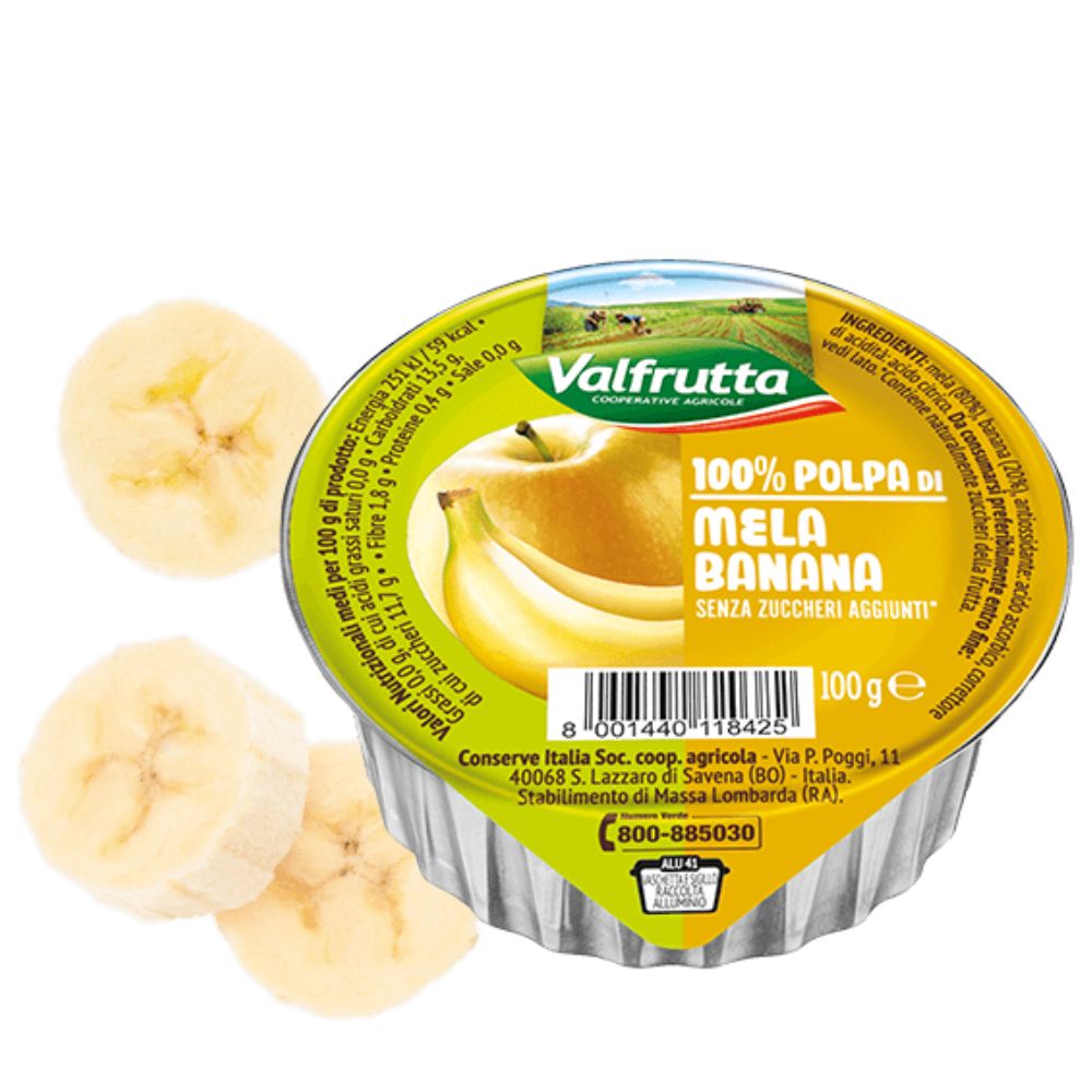 Valfrutta - 100% Polpa di Mela e Banana, senza zuccheri aggiunti e glutine - 60 vaschette da 100 g